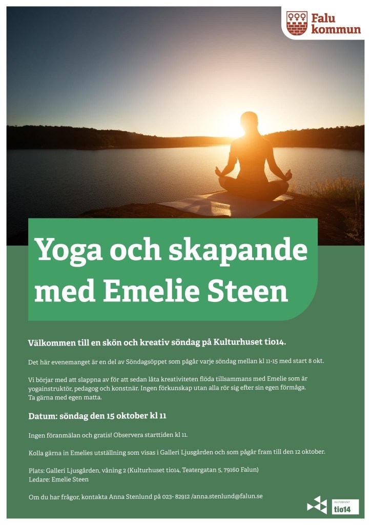 Välkomna till yoga och skapande på Kulturhuset tio14 i Falun den 15 oktober kl 11.00.