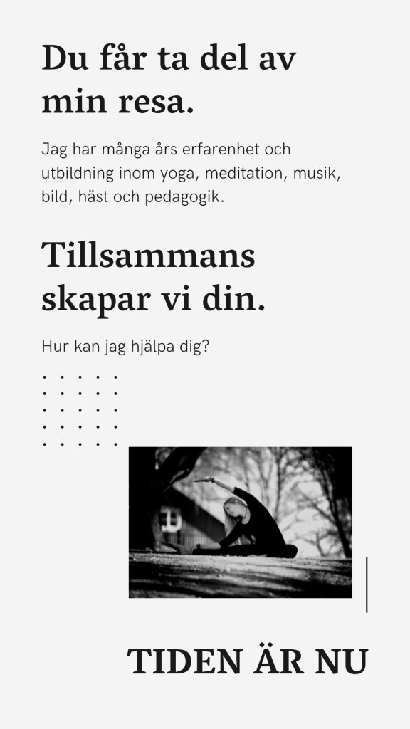 Yogan har fint förhållningssätt till djur och natur och kan samtidigt som träningsform stärka oss både mentalt och fysiskt. Jag ser stora fördelar med att kombinera yoga och ridning. Balans och rytm, mjukhet i kombination med styrka är byggstenar för såväl yoga som ridning. För att bli en god ryttare krävs bland annat kroppsmedvetenhet, andning, balans, symmetri, koordination, koncentration och avspänning. Allt detta tränar du med hjälp av yogan. Yogan stärker också bål, bröst, rygg och axlar som är fördelaktigt för ridningen.
